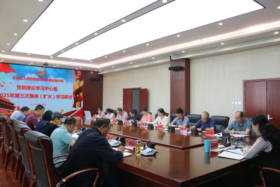 5月8日,云南省人民检察院昆明铁路运输分院(以下简称昆明铁检分院)举行党组理论学习中心组2025年第三次集中学习,两级三院全体检察人员参会,省检察院党组成员、昆明铁检分院党组书记、检察长王向红主持会议并讲话。