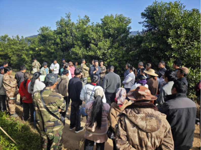 近日,在云南省人民检察院昆明铁路运输分院(以下简称“昆明铁检分院”)驻村工作队的积极联系与协调下,云南省林业和草原科学院(以下简称“省林科院”)坚果种植专家团队——科技特派队深入芒市遮放镇,先后赴河边寨村及周边拱岭村、邦达村、弄丘村等坚果种植重点村,开展“澳洲坚果丰产栽培与病虫害防治”系列培训活动。