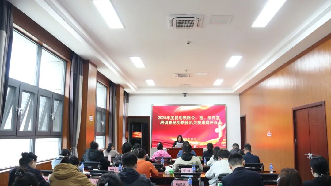 12月23日至25日,云南省人民检察院昆明铁路运输分院组织两级三院刑事检察人员在开远铁路运输检察院开展“2025年度昆明铁路公、检、法同堂培训暨昆明铁检机关观摩庭评议”活动。培训邀请了昆明铁路公安、法院等6家单位的分管领导及从事刑侦、法制、刑事审判工作的相关人员共同参与。